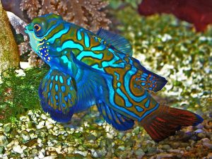 The Mandarin fish is a gem of the underwater world. Its small size, about 3–4 inches long at most, makes it a delightful addition for its nature. The fish’s body has a pattern of wavy blue lines on a field of bright orange. The elongated dorsal fin gives it a stunning look, much like a colored vase. The beautiful designs are not all show; they serve as a natural defense mechanism. The bright colors allow the fish to blend in with the coral reefs where it resides.