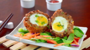 The snack is made by practically wrapping up a boiled egg in dough, and deep-frying it.