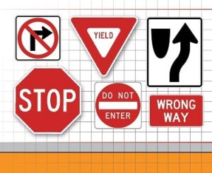 They include stop signs, yield signs, turn and lane use signs and traffic signal signs (“No Turn on Red,” for instance).